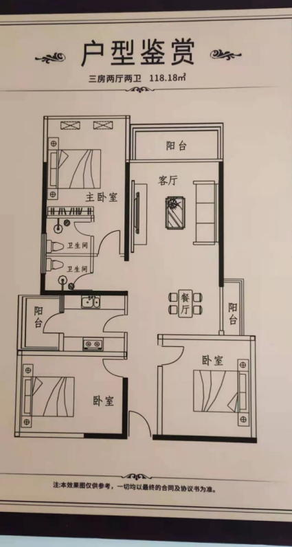 三房二廳二衛(wèi)三陽臺(tái):118㎡