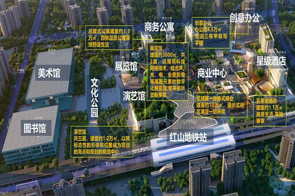 地鐵4號(hào)線、6號(hào)線紅山站無(wú)縫接駁,通達(dá)城市,全市稀缺的雙地鐵口物業(yè),客流通達(dá)便捷,未來(lái)將通過(guò)雙地鐵匯聚全市客流