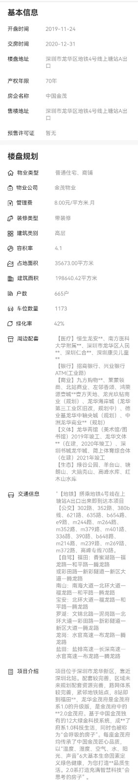 項(xiàng)目位于深圳市龍華新區(qū),靠近深圳北站。配套較完善,區(qū)域未來(lái)規(guī)劃配套資源完善,路網(wǎng)體系較完善,緊鄰地鐵站點(diǎn),8站即到福田**,龍華金茂府是金茂府系1.0的升級(jí)版,是金茂府中的**2.0金茂府?;谥袊?guó)金茂獨(dú)有的12大綠金科技系統(tǒng),成**了府系1.0科技生活,同時(shí)也被稱為“會(huì)呼吸的房子”。每座金茂府均傳承了中國(guó)金茂匠心品質(zhì),以“溫度、濕度、空氣、水、陽(yáng)光、聲音”6大基本生命因素定義綠色健康,為您打造**品質(zhì)生活。2.0系打造充滿智慧科技“會(huì)思考的房子” 。