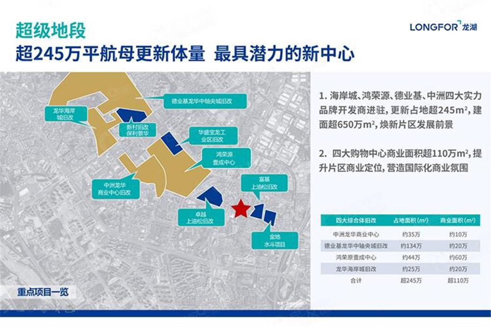 粵港澳大灣區(qū)中軸,深圳地理中心,龍華中心地段。政府約2000億元投資,近2.5倍福田中心區(qū)規(guī)模,超60個標(biāo)志性重大項目,打造集高端商務(wù)、現(xiàn)代商貿(mào)、金融服務(wù)于一體的國際會客廳。片區(qū)規(guī)劃更新面積超245萬㎡,建面超650萬㎡,中洲、海岸、德業(yè)基、鴻榮源四大購物中心超110萬㎡集中商業(yè)建面,周邊規(guī)劃綜合體林立,定鼎深圳未來最大商圈;