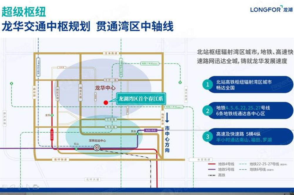 項目盡享北站-紅山片區(qū)及龍華新中心雙核配套,北站超級交通樞紐暢達(dá)全國,6條地鐵線、5橫4縱路網(wǎng)通達(dá)全市。