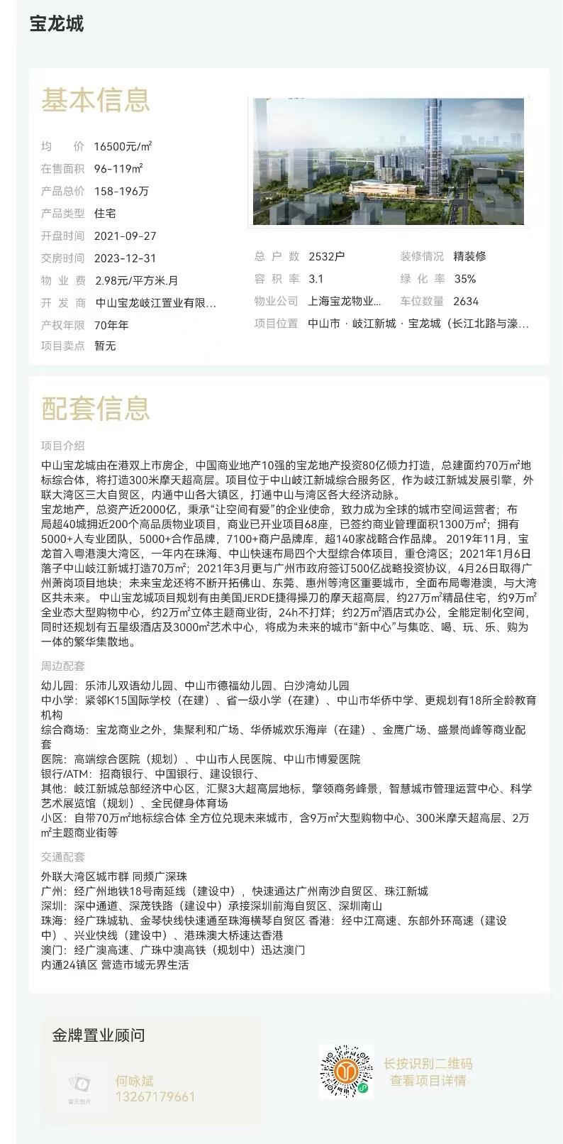 區(qū)域:中山市歧江新城寶龍城(長(zhǎng)江北路與濠江西路交匯處)