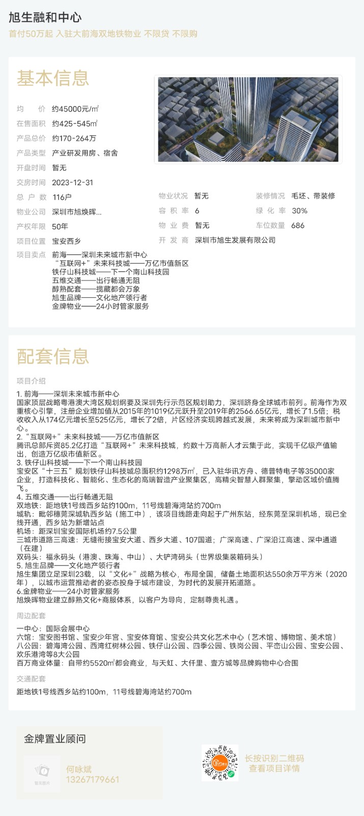 樓盤:旭生融和中心物業(yè)類型:產(chǎn)業(yè)研發(fā)用房、宿舍戶型:0室面積:約425-545平米總價(jià):約170-264萬聯(lián)系人:何詠斌聯(lián)系電話:13267179661